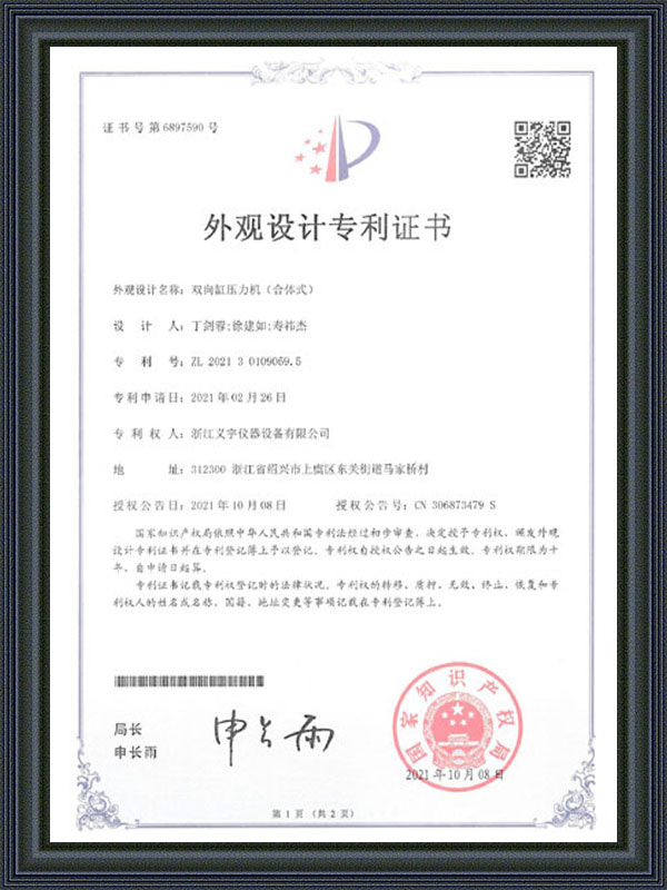 外観意匠特許証明書